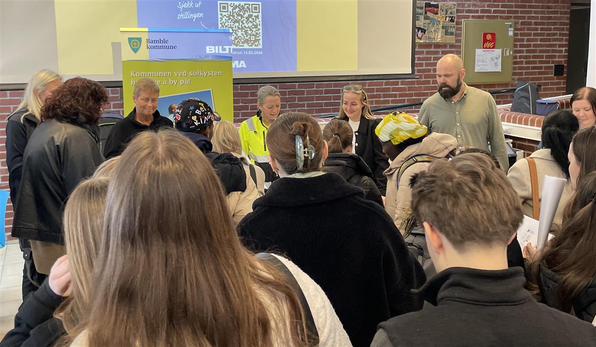 Mange unge stakk innom for å høre om mulighetene innen helse, oppvekst, tekniske fag og administrasjon – hos kommunens største arbeidsgiver.